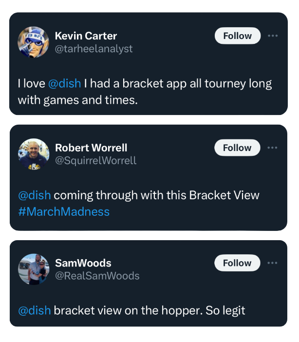 Even though DISH was not offering a bracket challenge this year, fantasy players were used to tracking tournament progress in the bracket format.