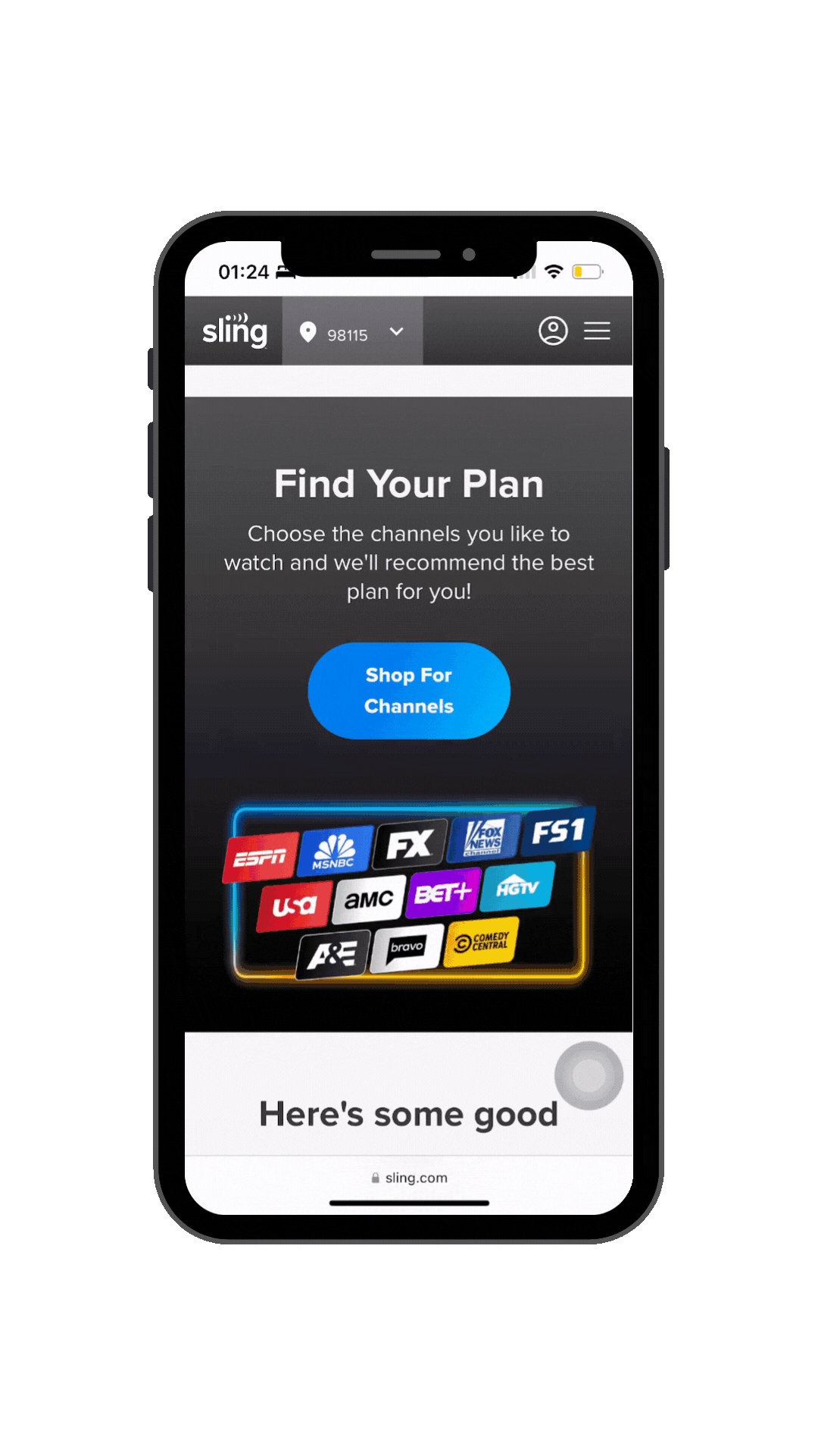 sling.com accounted for over 60% of paid subscription acquisition for Sling TV. However, the marketing-driven nature of the site gave little visibility into Sling’s full content offering, contributing to customer hesitation around package selection.